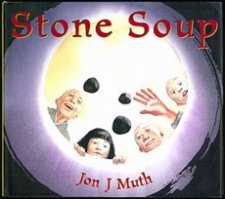 Jon J. Muth has taken traditional European folklore, set it against an ancient Chinese background, and allowed three Zen monks to lead us on a journey of enlightenment. In this version of “Stone Soup,” the monks, who represent health, wealth and prosperity, come across a village depleted of all three. Unable to entice the hospitality of any of the villagers, the three monks set about making a simple pot of stone soup. It is not until the heroine of the story comes along, a little girl dressed in yellow, symbolic of someone special, that their soup is able to come to life. What begins with the innocent curiosity of the villagers quickly turns to an innate desire to contribute, and soon the monk's simple soup is transformed into a delightful feast for all to share.